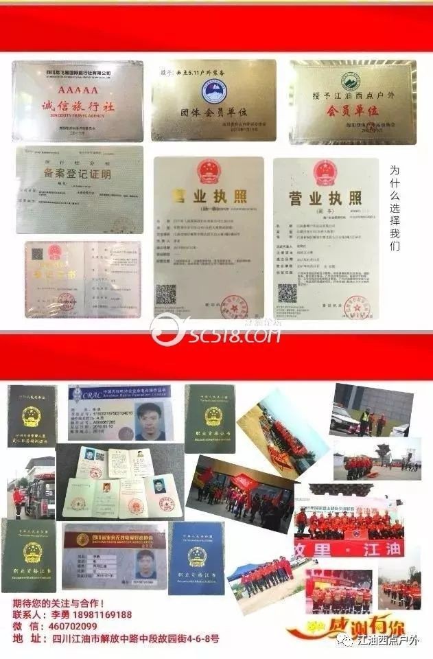 公司名稱:四川省易飛易國際旅行社有限公司江油分社、四川省5A旅行社、四川省誠信旅行社