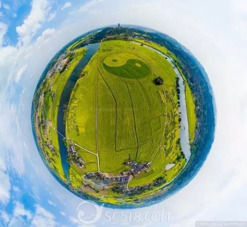 瓊江穿花海而過,乘游船坐覽花海,享受春風拂面,蹬上陳摶山頂,還可觀賞到以油菜為主要背景、小麥為配景形成的“太極”圖案。
