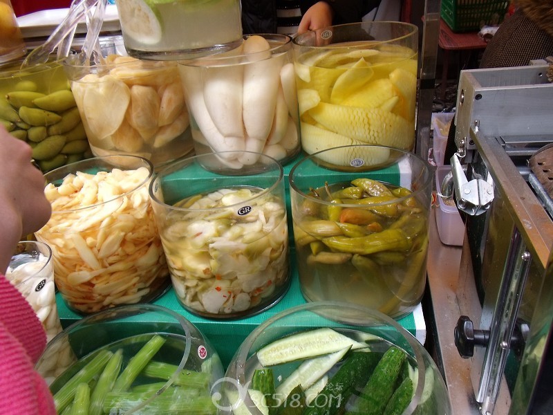 靖王府的位置坐落于中心城區(qū),雖然沒有什么景點,但是出靖王府以后,對面就是桂林的步行一條街,俺個人觀點,桂林的美女還是木有成都的多,而且不大氣,也不洋氣,一群人在街上逛了多一會兒,也沒有幾個美女出現(xiàn)在我們的視線里,倒是小吃一條街吸引著一群吃貨,各種美食供大家欣賞哈,讓親們飽飽眼福,大部分俺其實沒有嘗過,俺們就買了一個那個什么梅干菜扣肉餅,沒有四川的餅好吃,甜甜的,干干的,說不出來的味道,桂林的一大特色就是泡菜,不過和四川的味道有很大的區(qū)別,我個人比較不喜歡,放了太多的糖吃出來甜酸味特重,還是米粉好吃些!吼吼