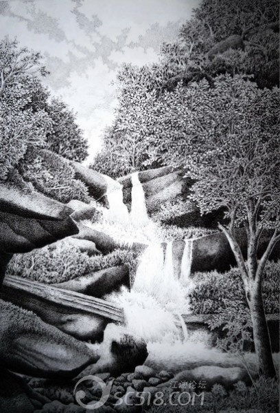 標(biāo)題: 老君山瀑布(鄧勇鋼筆畫(huà))