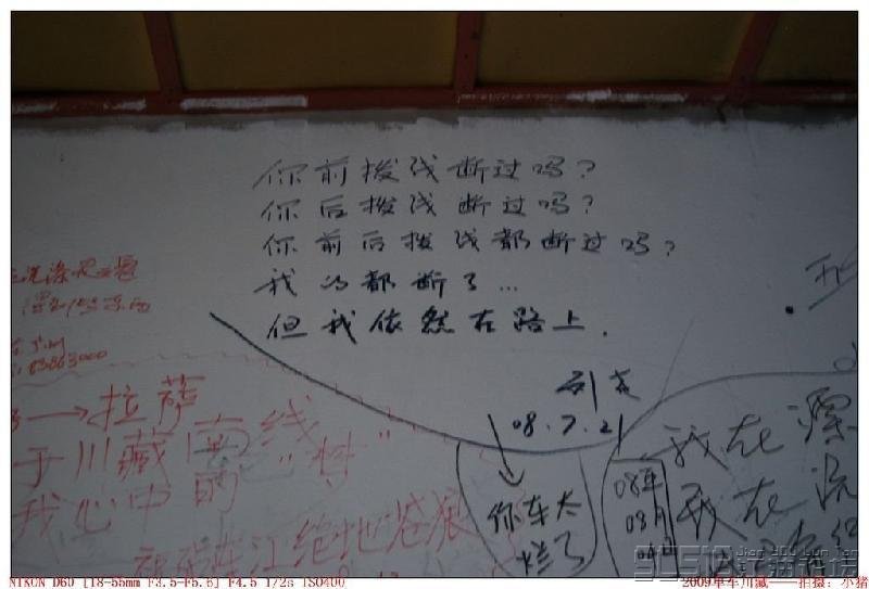 我拉開腰包拉鏈給他看:“就三十塊錢,別的錢都在前面朋友那里,他們七個(gè)人,走得快,已經(jīng)在新都橋等我了。”也不知道他會(huì)不會(huì)信我的鬼話,鬼曉得呢!其實(shí)我還有六百塊現(xiàn)金在馱包里,就擔(dān)心遇到劫匪。